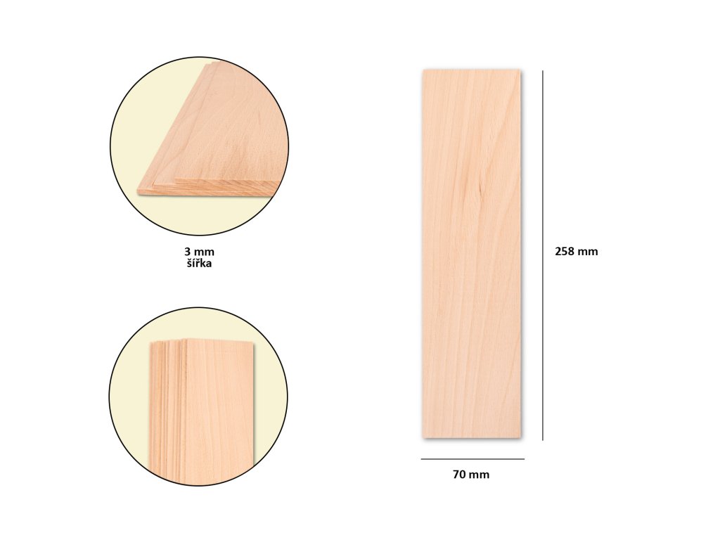 Metrie | Dřevěná destička z masivu, 258 x 70 x 3 mm, buk, 1 ks