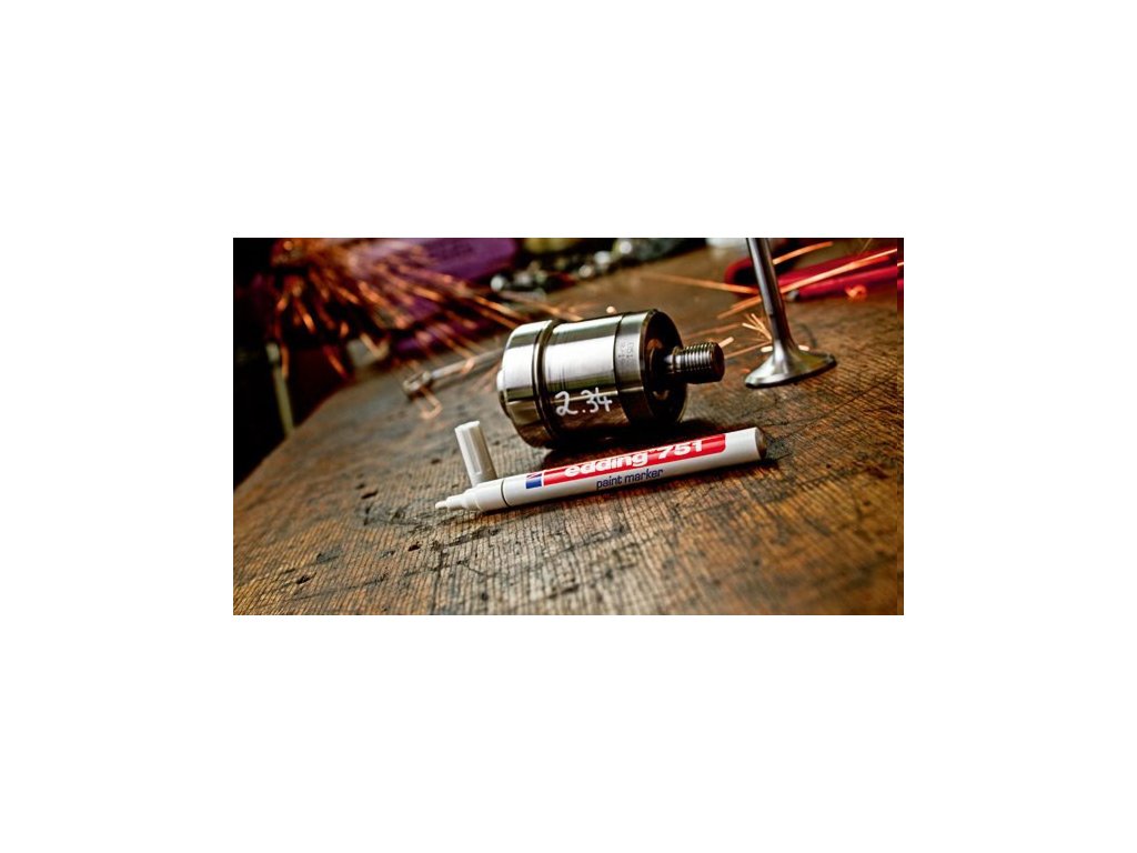 Lakový popisovač Edding s kulatým hrotem a šířkou stopy 1-2 mm má vysokou krycí schopnost díky velkému množství barevného pigmentu v náplni a skvělou přilnavost k povrchu díky většímu množství pojiva než u jiných popisovačů. Je též vysoce otěruvzdorný. Díky těmto vlastnostem se skvěle osvědčuje všude tam, kde potřebujete stálost a odolnost popisku či značky.