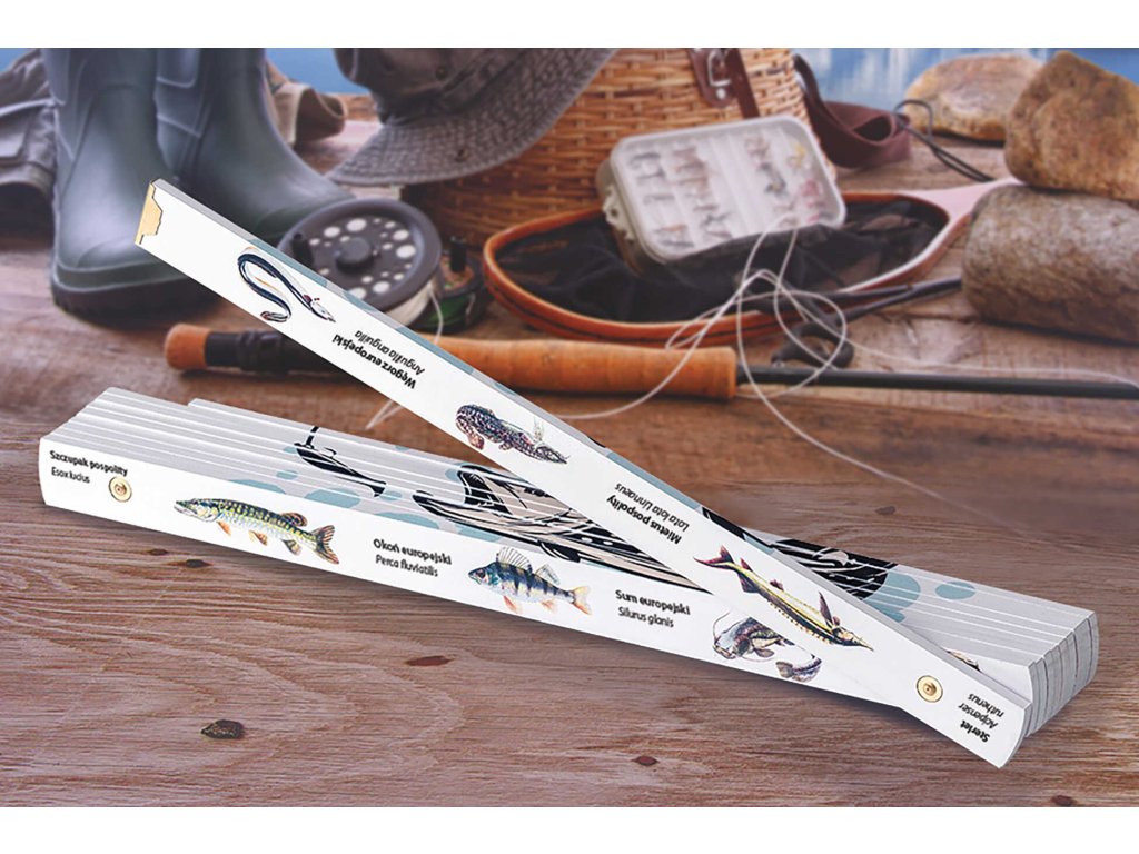 Miara składana Metrie Block-52 to wyjątkowy prezent dla każdego wędkarza. Wewnątrz znajdują się kolorowe ilustracje 30 najpopularniejszych ryb słodkowodnych, wraz z ich nazwami po polsku i po łacinie. To praktyczne narzędzie pomaga nie tylko mierzyć zdobycz, ale też rozpoznawać gatunki i rozwijać wędkarską wiedzę.