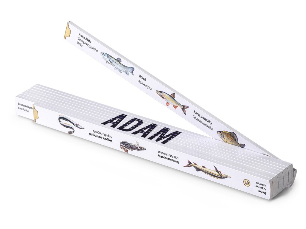 Rybářský skládací metr 2 m s barevnými obrázky sladkovodních ryb je přesné měřidlo pro úlovky a osobní dárek s vlastním jménem Adam. Spojuje praktickou pomůcku a personalizovaný motiv, vyrobeno v Česku v certifikované kvalitě.