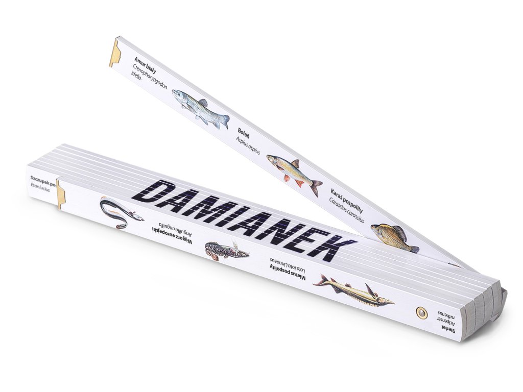 Rybářský metr 2 m s ilustracemi sladkovodních ryb slouží jako přesné ekologické měřidlo s osobním potiskem jména Damianek. Česká trvanlivá výroba garantuje dlouhou životnost. Originální personalizovaný dárek.