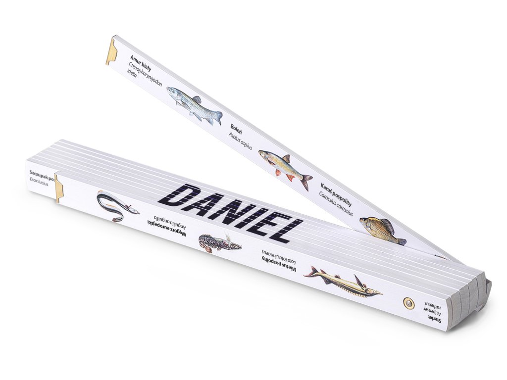 Rybářský skládací metr 2 m s barevnými ilustracemi ryb nabízí přesné měření úlovků a zároveň originální personalizovaný motiv se jménem Daniel. Vyroben v Česku, ekologický a certifikovaný pro kvalitní použití.