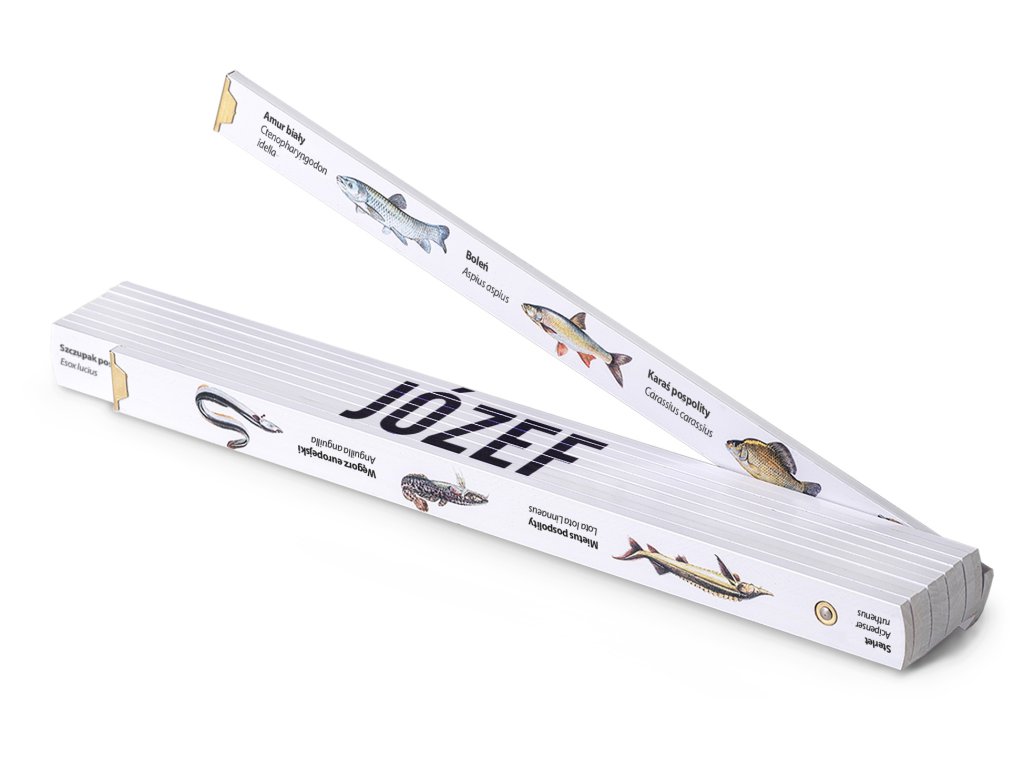 Rybářský skládací metr 2 m s barevnými obrázky ryb je praktické měřidlo a jedinečný osobní dárek se jménem Józef. Česká ekologická výroba garantuje kvalitu i odolnost. Certifikované provedení pro jistotu měření.