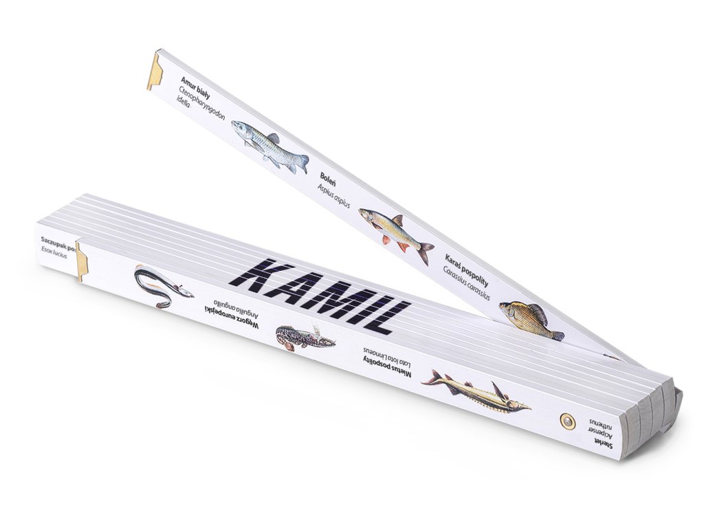 ybářský metr 2 m s barevnými obrázky sladkovodních ryb je přesné měřidlo vhodné pro každodenní používání u vody. Personalizovaný potisk jména Kamil dodává dárku osobní charakter. Vyrobeno ekologicky a certifikovaně v Česku.