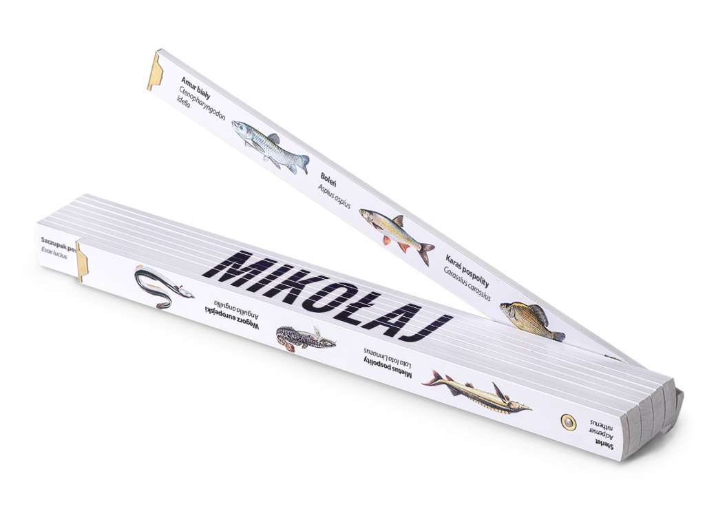 Skládací metr pro rybáře 2 m s barevnými rybami je praktické měřidlo i jedinečný dárek se jménem Mikołaj. Vyrobený v Česku z ekologických materiálů s dlouhou trvanlivostí. Certifikovaný produkt pro přesná měření.