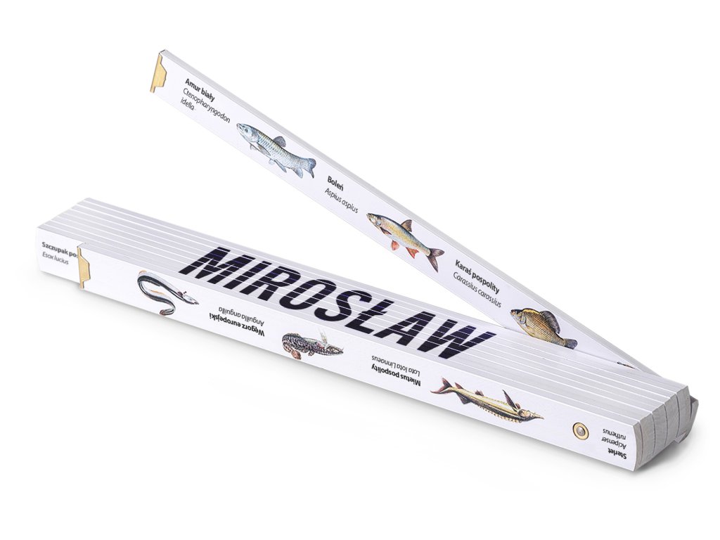 Rybářský metr 2 m s barevnými ilustracemi sladkovodních ryb slouží jako přesné měřidlo do terénu. Personalizovaný potisk jména Mirosław z něj dělá osobní dárek. Ekologická a certifikovaná česká výroba zajišťuje dlouhou trvanlivost.