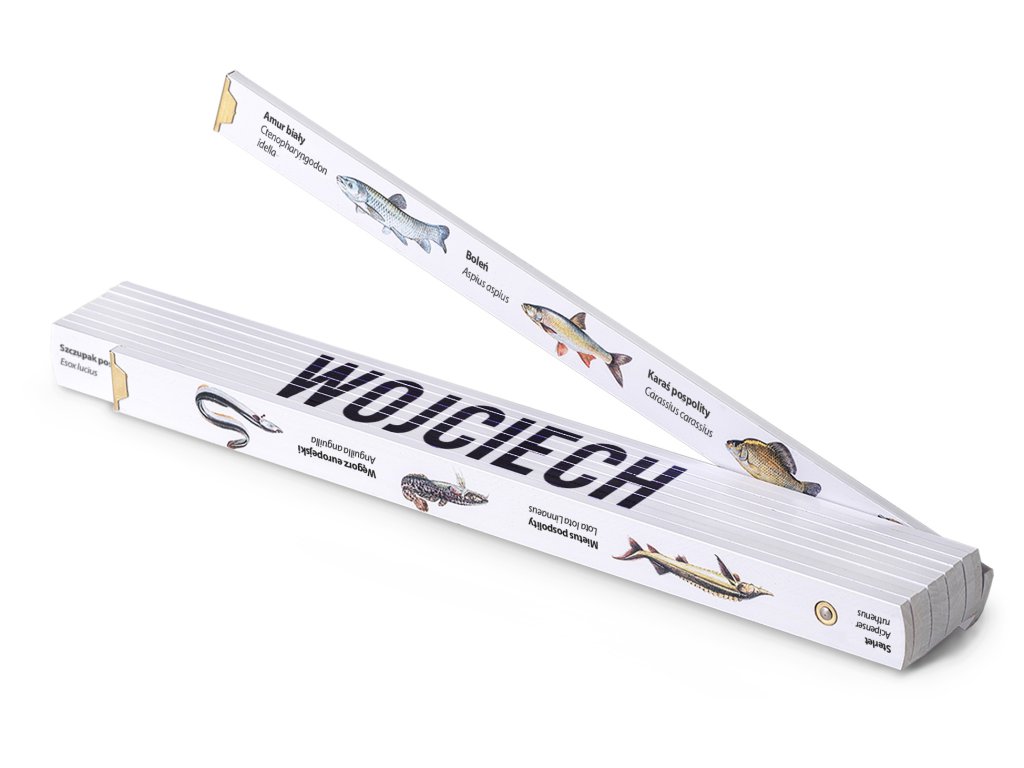 Skládací metr pro rybáře 2 m s barevnými rybami nabízí přesnou stupnici pro měření úlovků a možnost vlastního jména Wojciech. Ekologické odolné provedení pochází z české výroby. Praktický doplněk každé rybářské výbavy.