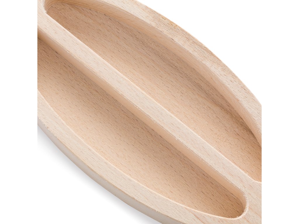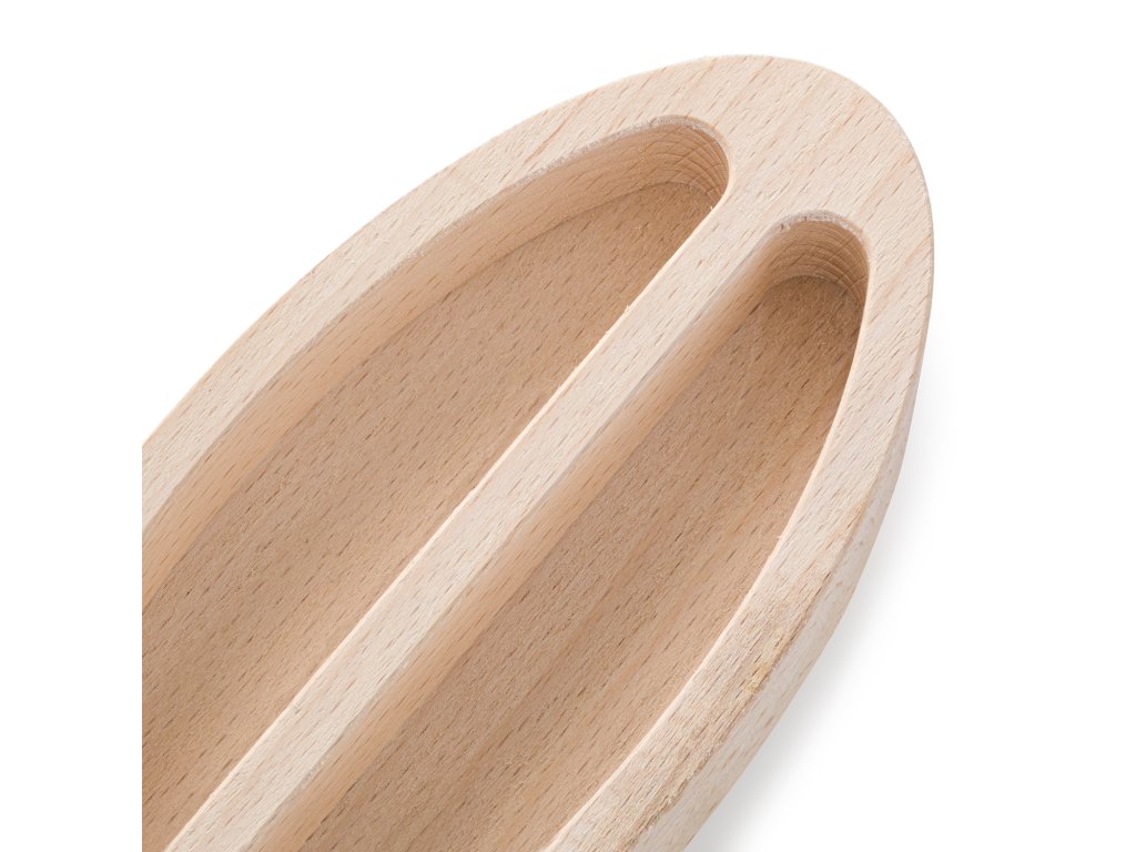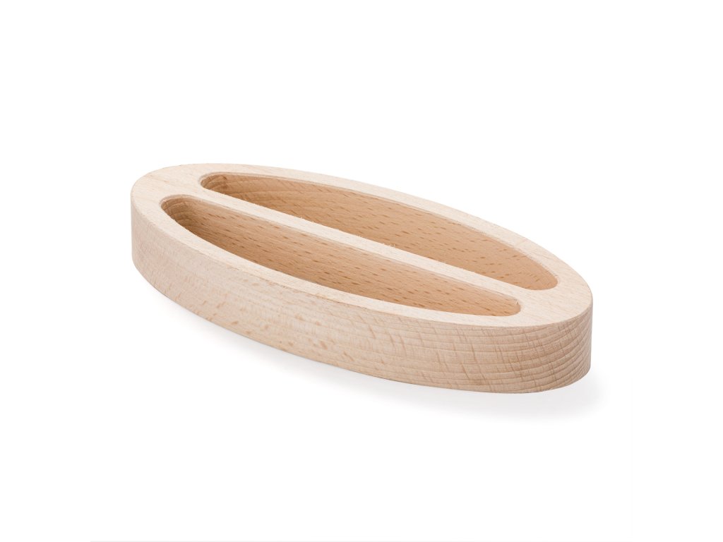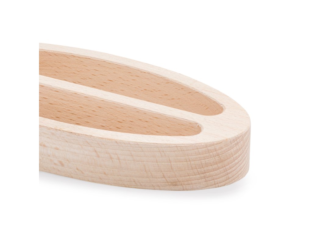 Vyrobena z masivního bukového dřeva o tloušťce 20 mm. Tvar mísy je zaoblený, přepážka vedená šikmo vytváří zajímavý vnitřní rozvrh, který plynule navazuje na hladký povrch misky.