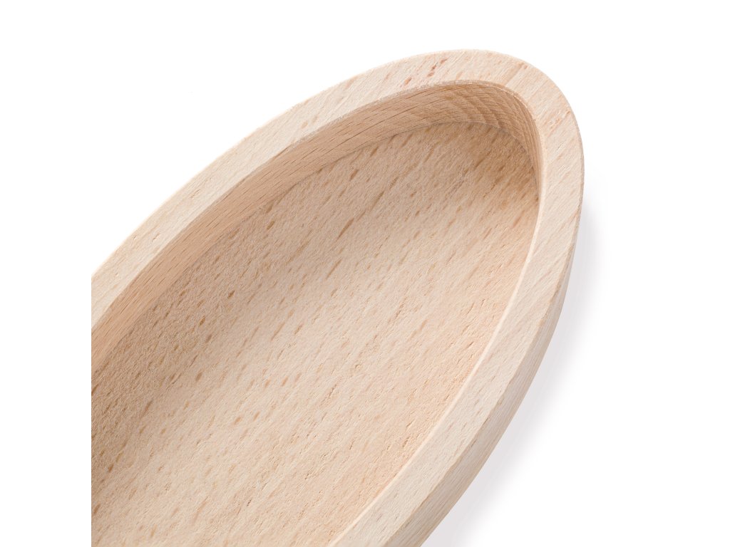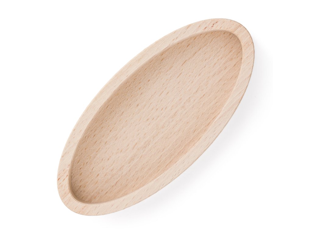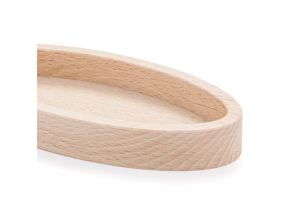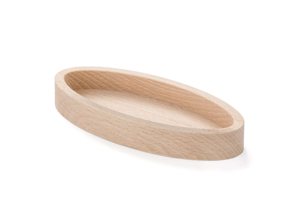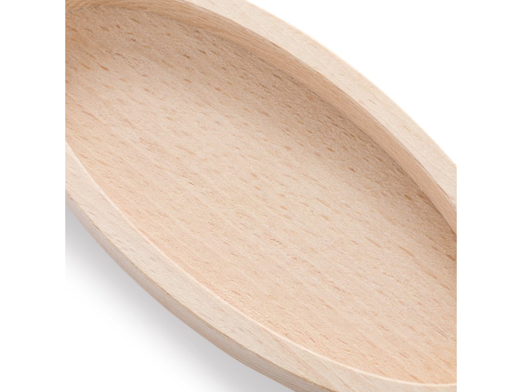 Malá oválná miska z bukového dřeva nabízí čistý a ničím nečleněný vnitřní prostor. Je vhodná pro ukládání drobností, servírování menších porcí nebo organizaci na pracovním či jídelním stole.