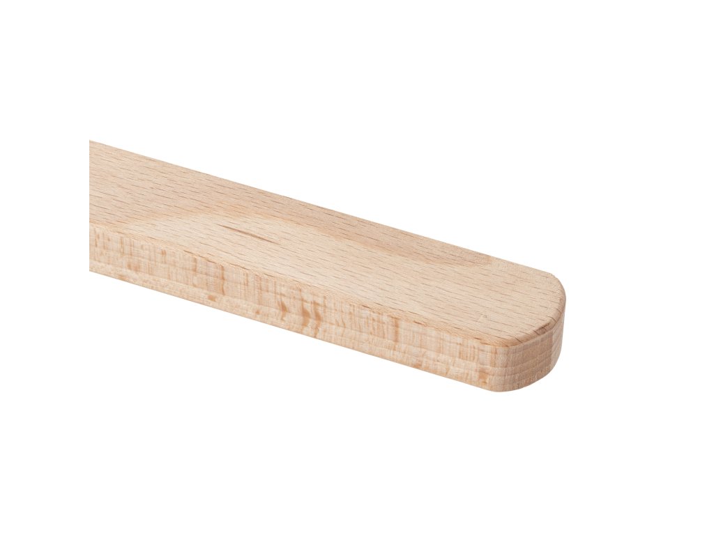 Vyrobena z tvrdého bukového dřeva s přirozenou kresbou a vysokou mechanickou odolností. Hladce opracované tělo je tvarováno do ploché, mírně šikmé pracovní hrany, která usnadňuje odstranění nečistot. Celkový rozměr škrabky je 280×60 mm, tloušťka 10 mm zajišťuje mimořádnou pevnost.
